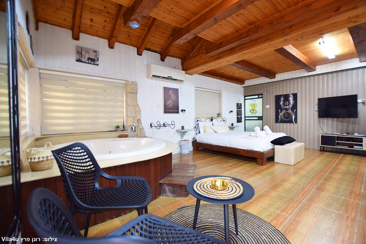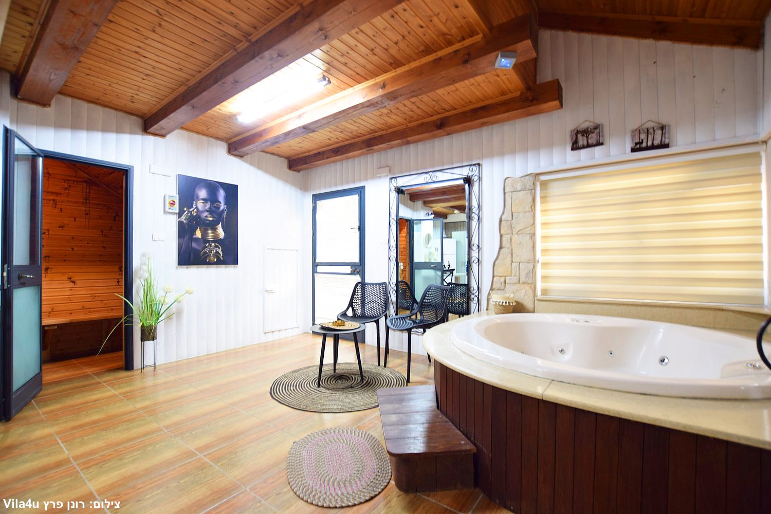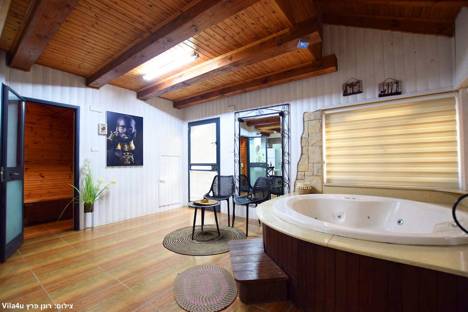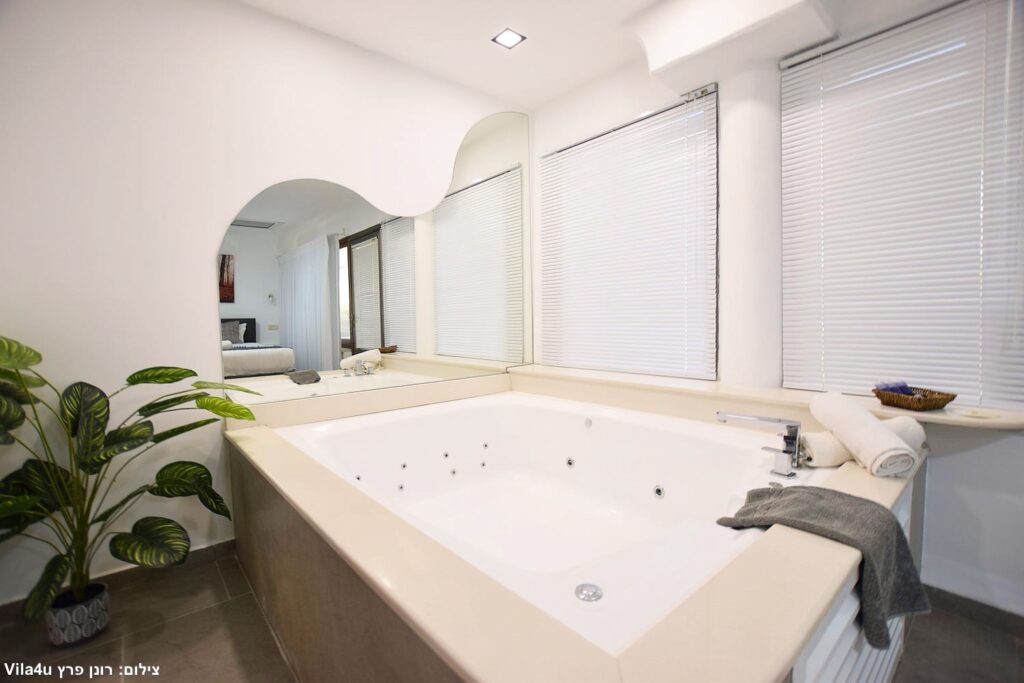 לצד הבריכה תמצאו ג’קוזי ספא ענק, מקורה ומחומם, המאפשר ליהנות מחוויית פינוק מרגיעה בכל עונה ובכל מזג אוויר.